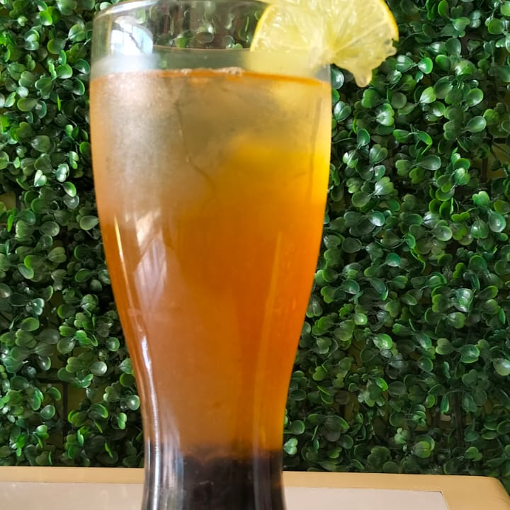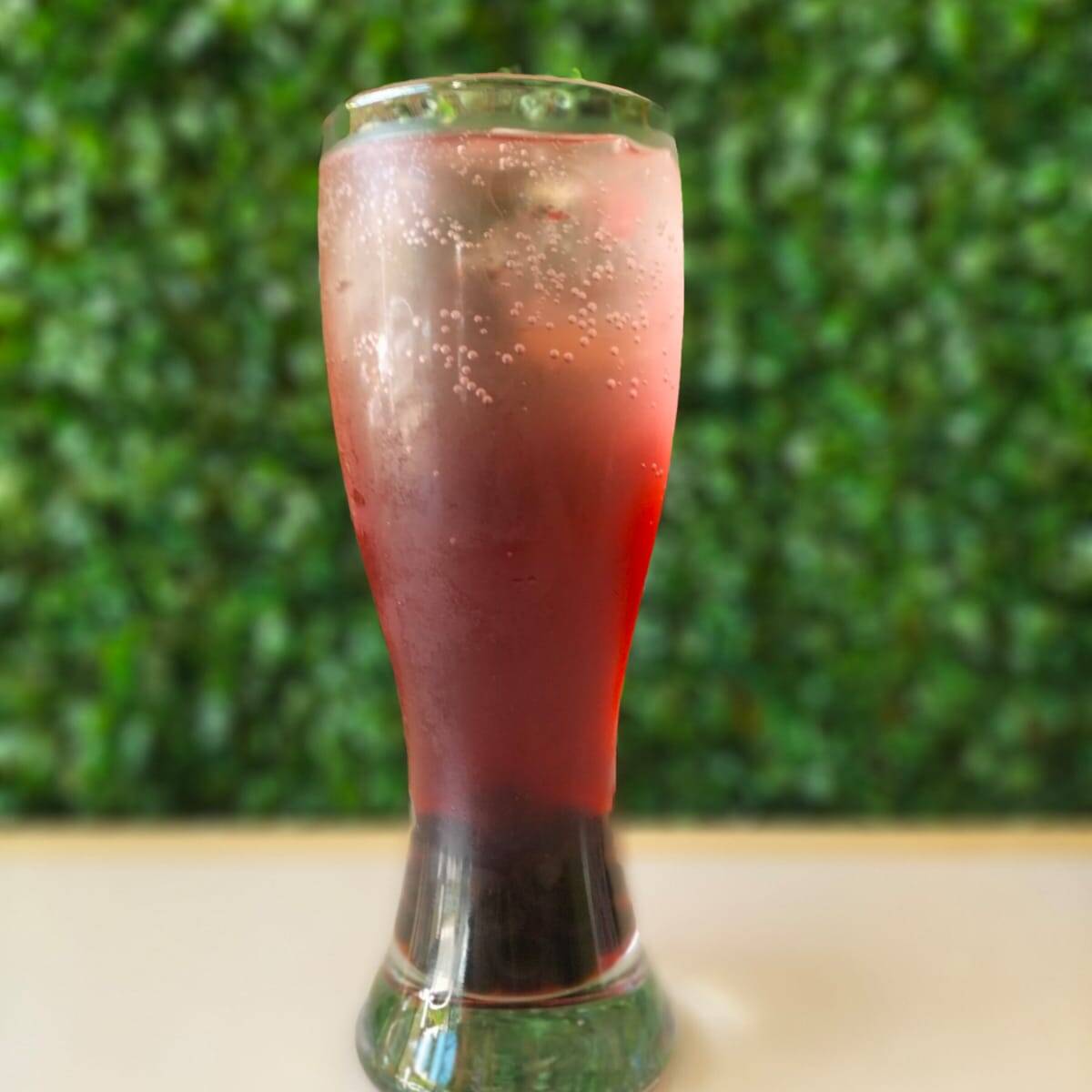 Mediana, mix de lechuga, pollo honey, piña asada, cebolla caramelizada, guayaba, queso Gouda y coco.