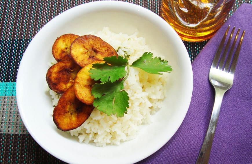 Orden de arroz con plátanos fritos.