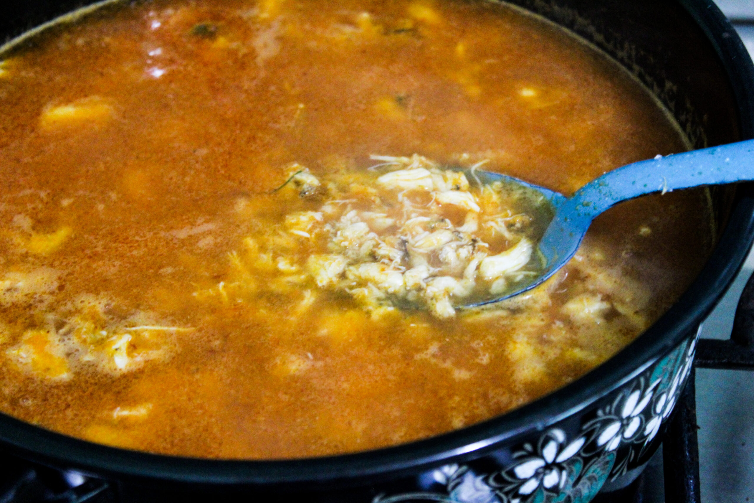 Caldo picoso de jaiba en pulpa.