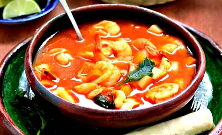 Caldo picoso de camarón en cáscara.