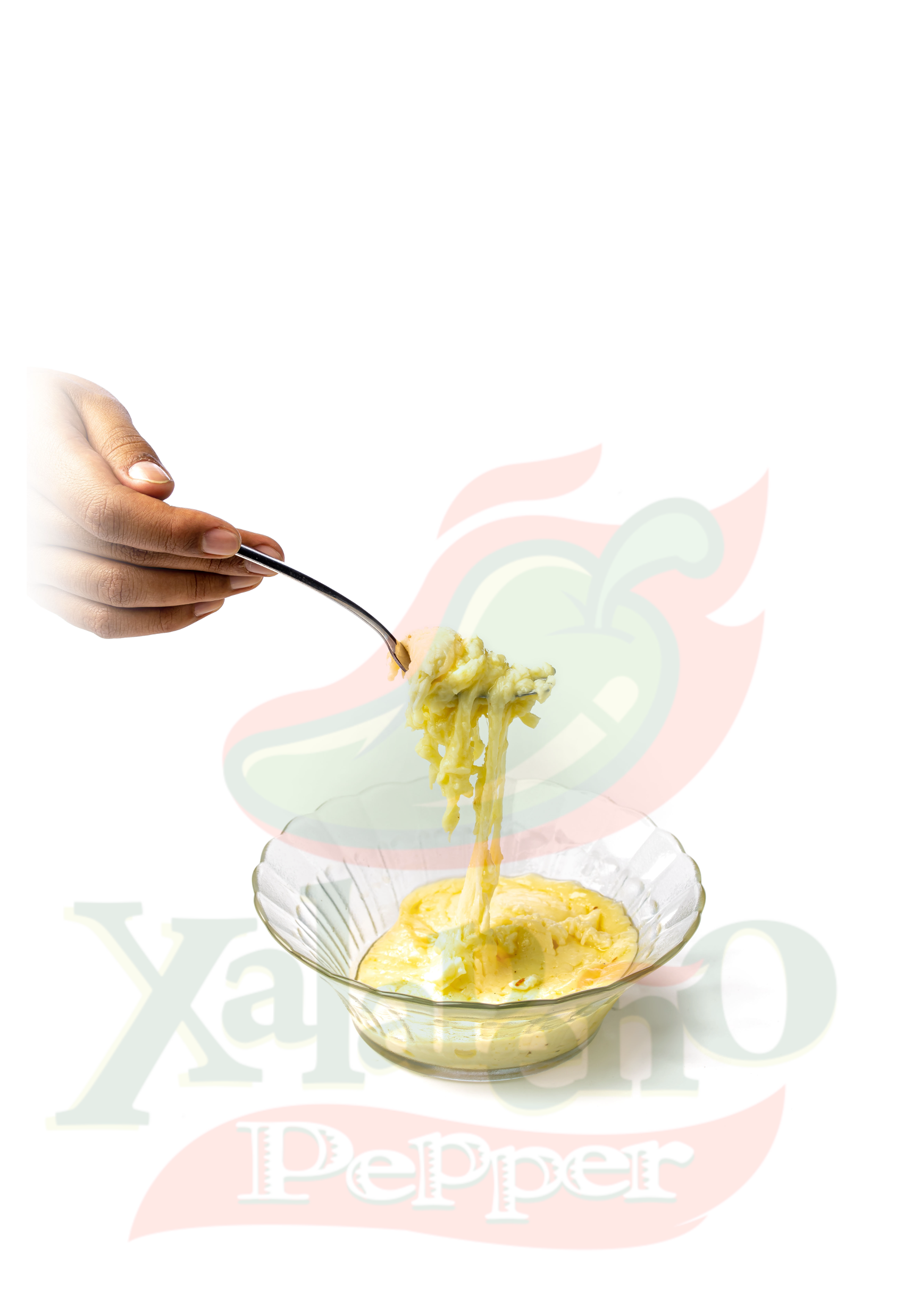 Pambazo frito en caldo de birria, con birria (80gr) y queso fundido
