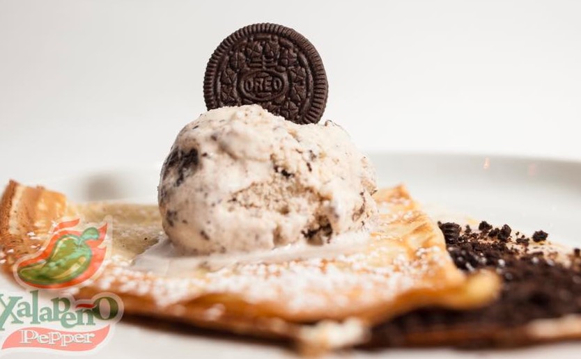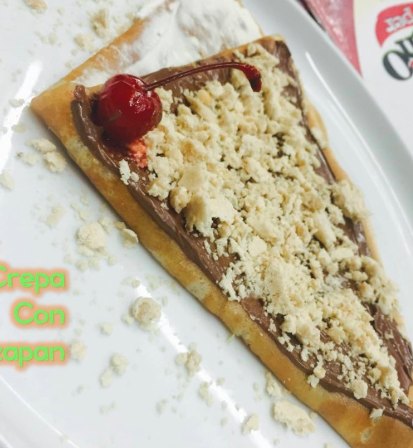 Queso philadelphia, nutella y mazapan, con una bola de helado