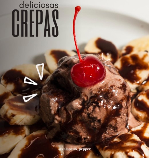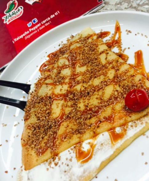 Flameada con brandy, bañada en salsa de naranja y manzana.