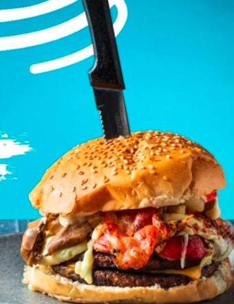 Tortilla gigante de harina con queso fundido, carne asada y champión