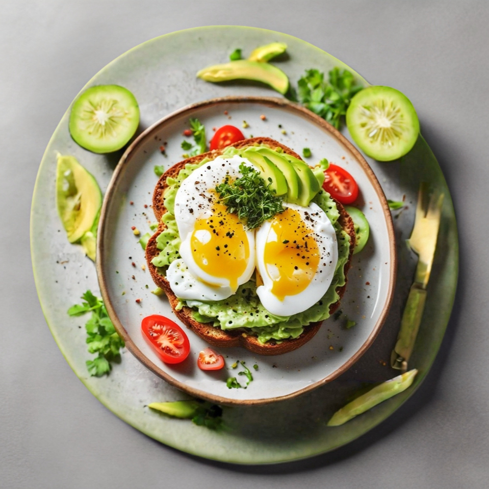 Pan artesanal tostado, untado con aguacate cremoso y coronado con un huevo pochado suave y delicado. Ideal para un desayuno nutritivo y delicioso.