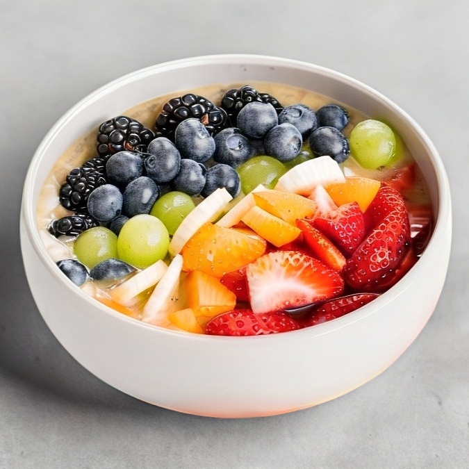 Fresca combinación de papaya y melón, servida con yogur natural, granola crujiente, miel y almendras. Una opción ligera y deliciosa para comenzar el día con energía.