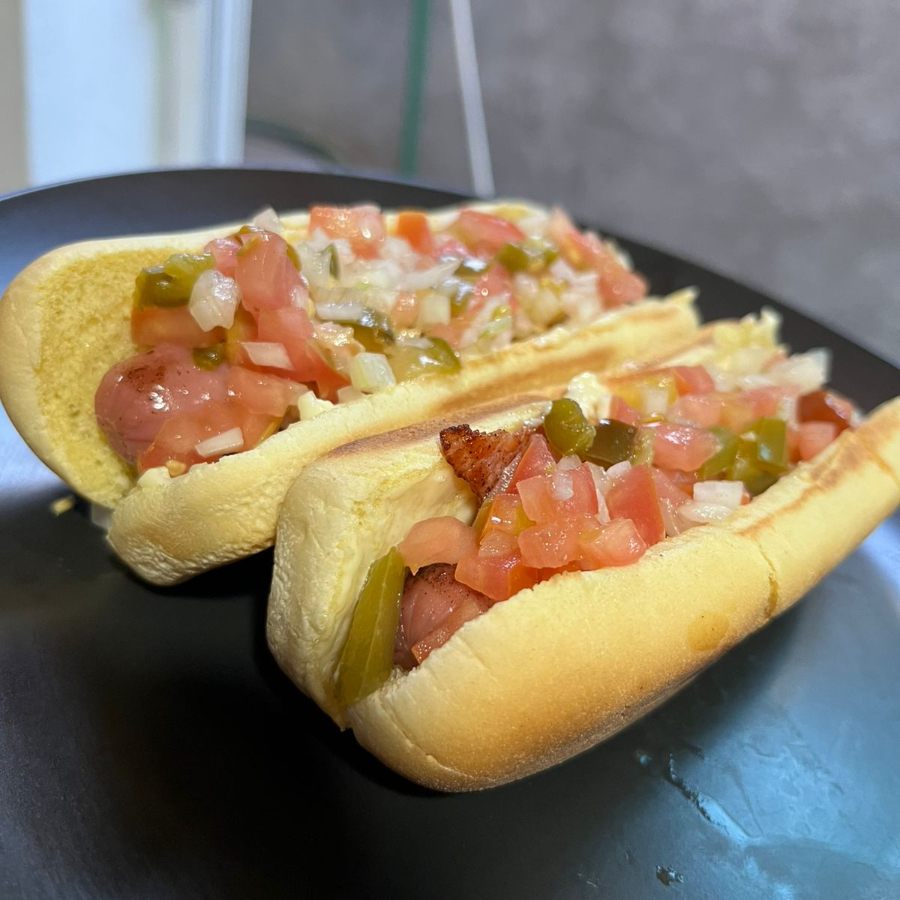 Salchicha c/tocino, mayoneza, mostaza, pico de gallo y catsup
