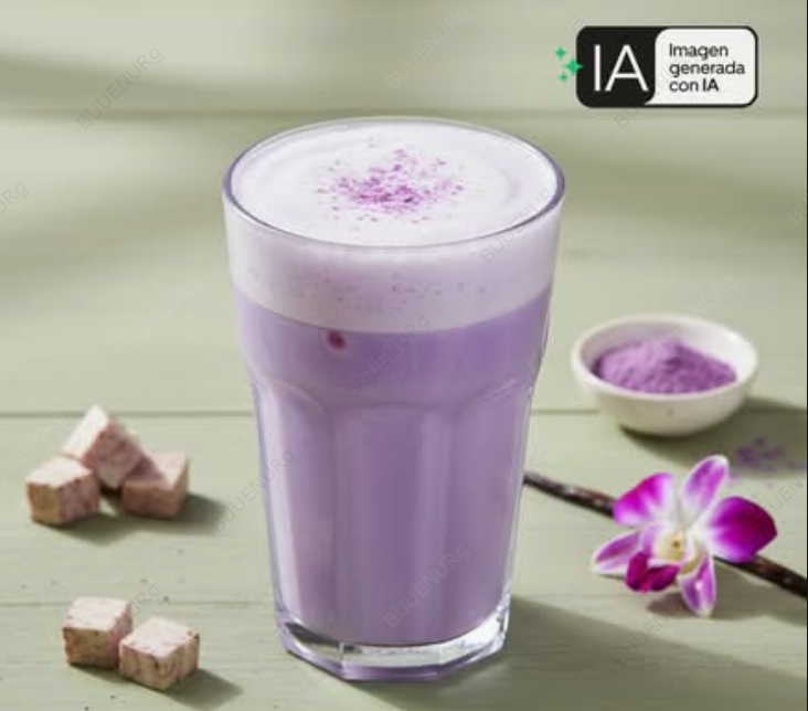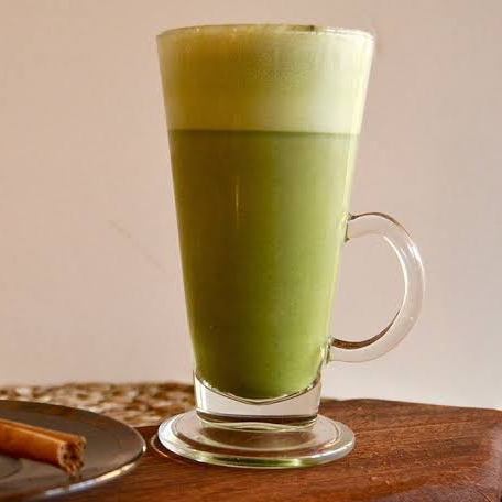 Bebida espumada hecha con matcha kaori en polvo y leche.