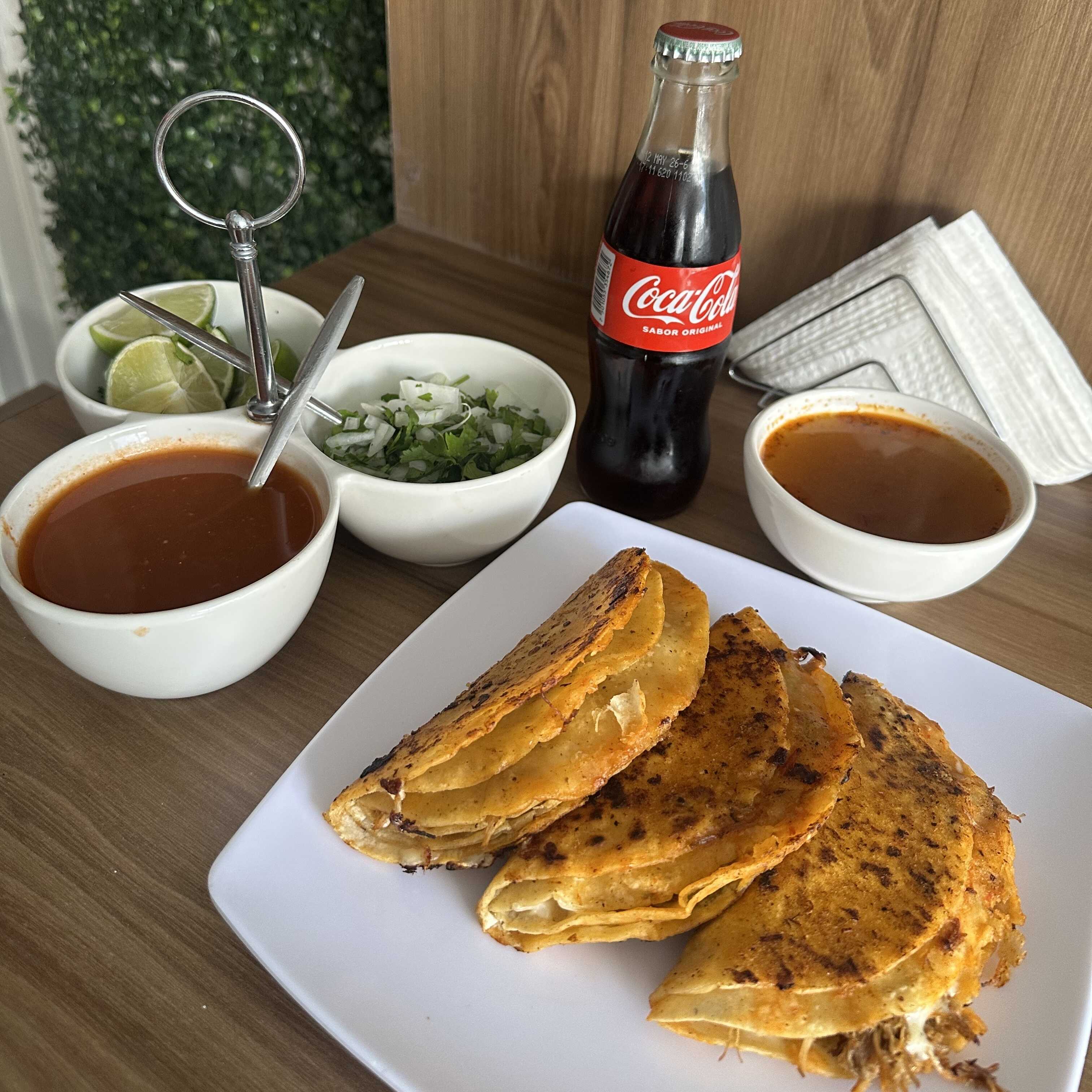 Consomé 8oz*1 + Quesabirria Toreada de RES*3 + Coca Cola 600ml*1