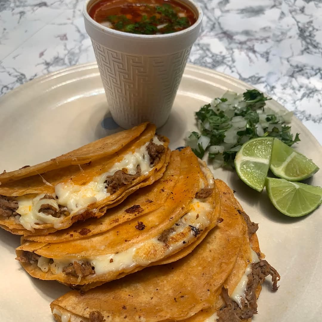 Deliciosas quesabirrias con carne de borrego y queso fundido