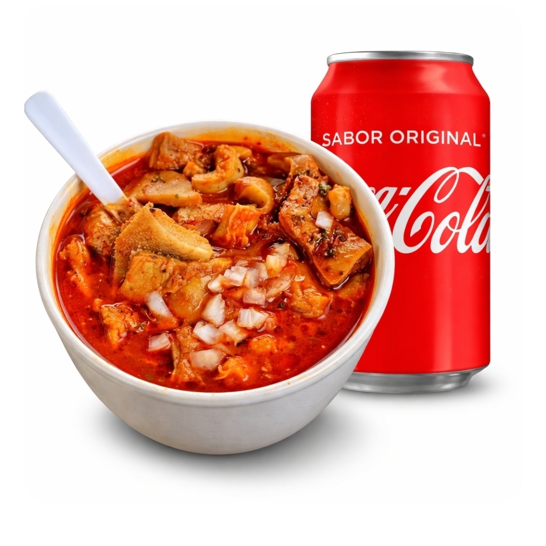 Litro de Menudo Rojo. Pancita de RES*1 + Coca Cola 355ml*1