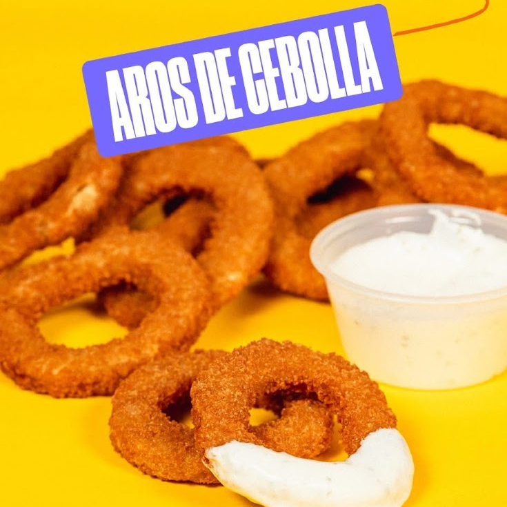 deliciosos aros de cebolla crujientes empanizados con harina especial, acompañados de 1 aderezo ranch 6 pcs.