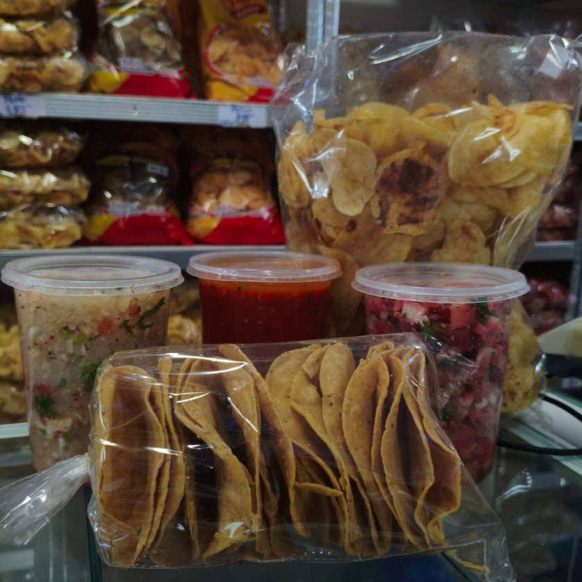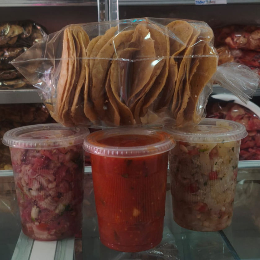 Tostada Casera 50 Pz*1 + Salsa Casera 1 Litro*1 + Trompa Preparada 1 Litro*1 + Cuerito Preparado 1 Litro*1