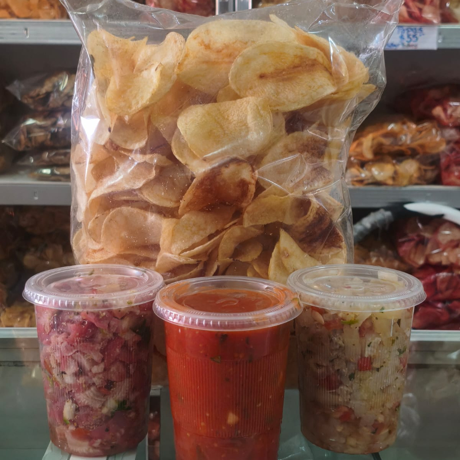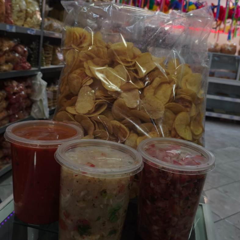Papa Salada 500 Gr*1 + Tostada Casera 20 Pz*1 + Salsa Casera 1 Litro*1 + Cuerito Preparado 1 Litro*1 + Trompa Preparada 1 Litro*1