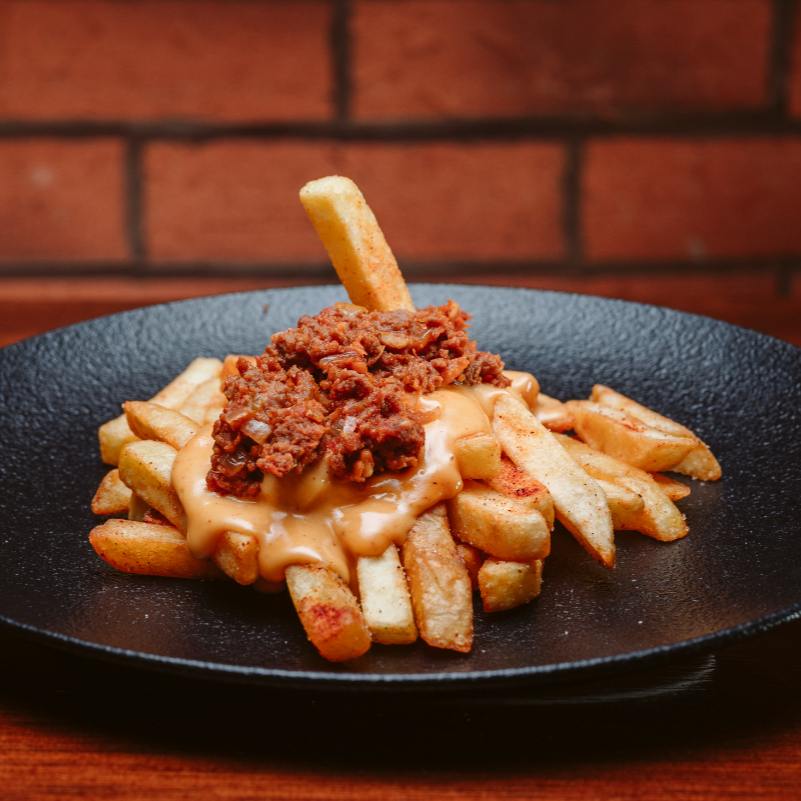 Papas a la francesa bañadas con salsa de queso y cubiertas con chilli (405g)