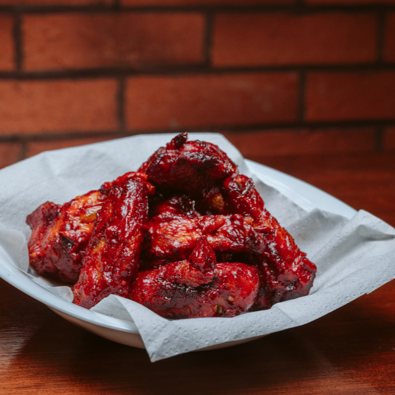 Porción de alitas bañadas en la salsa de tu elección, acompañadas de 100g de vegetales y aderezo ranch.