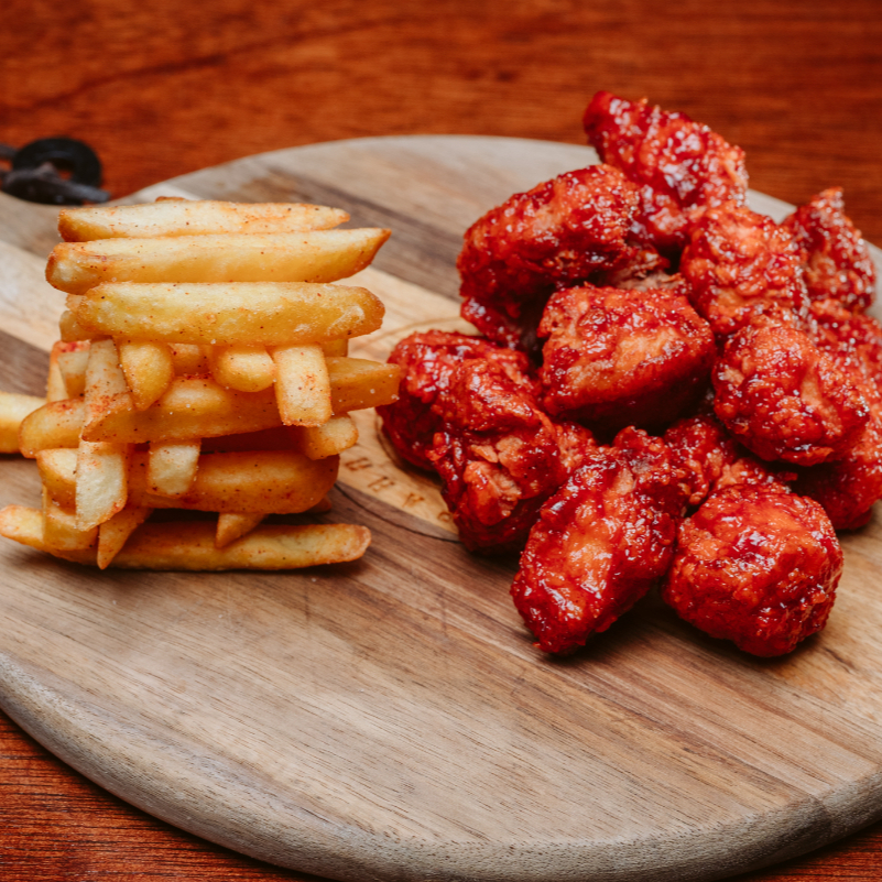 Porción de boneless naturales o bañados en la salsa de tu preferencia.