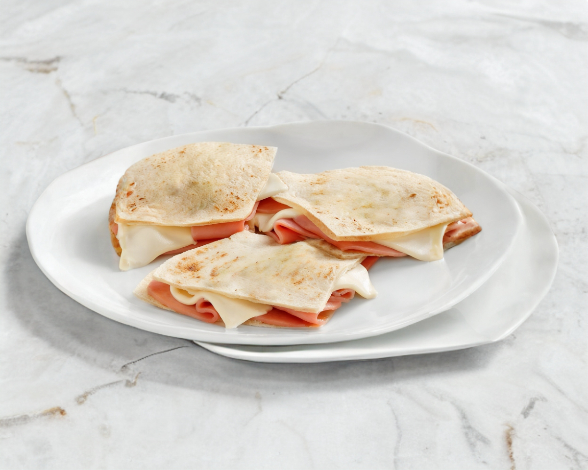 2 Tortillas de harina grande, queso chihuahua, jamón, lechuga, jitomate, cebolla, chiles curtidos y mayonesa.