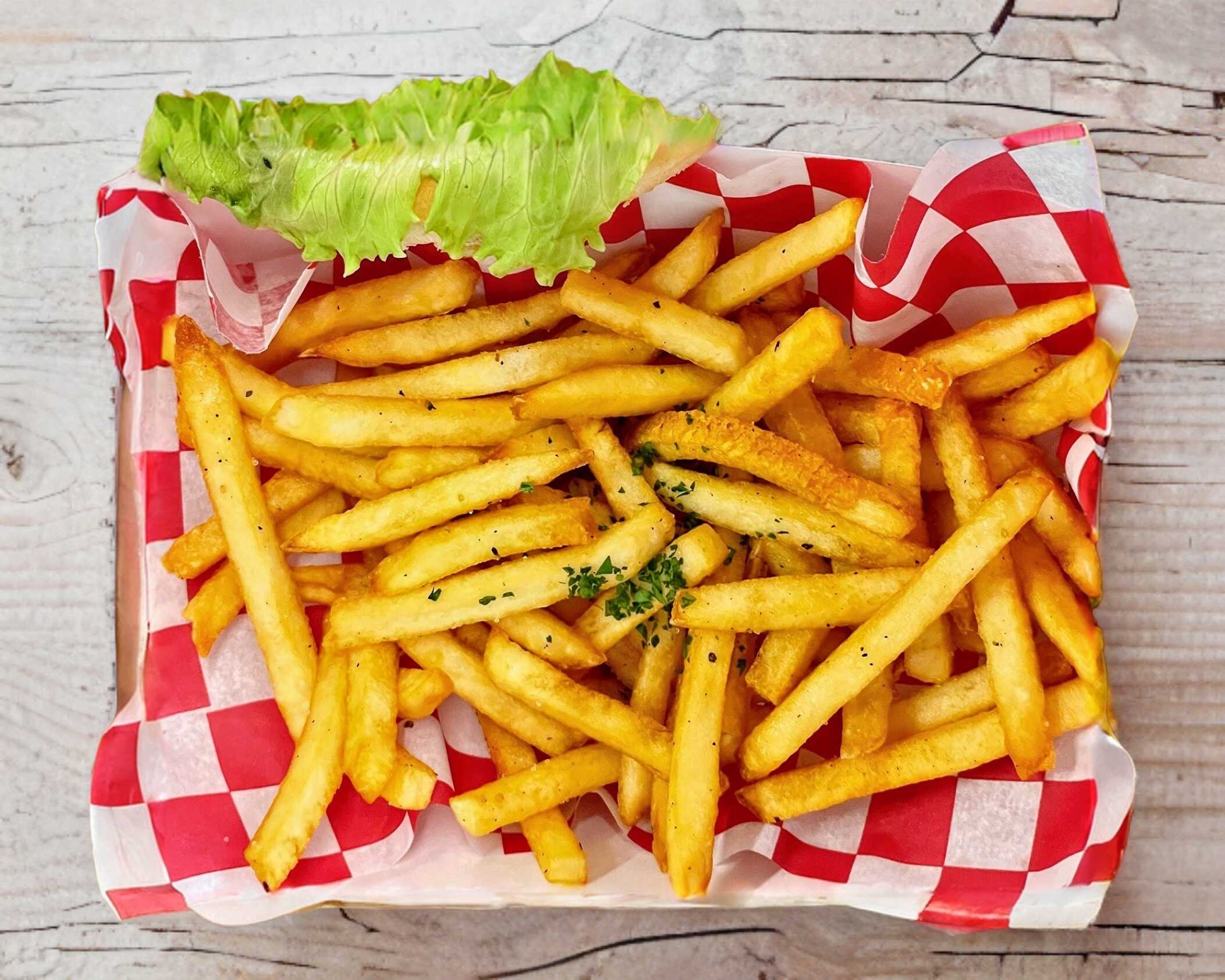 Crujientes papas acompañadas de sal kosher, pimienta, perejil y especias.