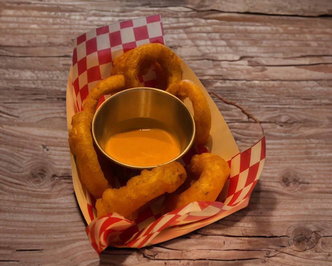 Famosos aros con receta secreta, acompañados de nuestro aderezo de la casa.