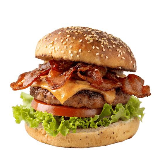 Deliciosa hamburguesa con carne de res, (receta de la casa) tocino crujiente, jamón, queso amarillo y vegetales frescos.