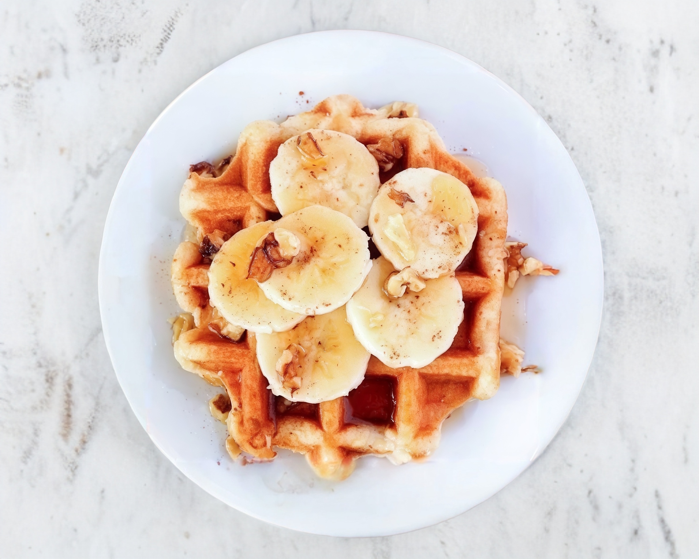 1 Waffle acompañado de fruta de temporada, porción de yogurt, mermelada y miel maple.