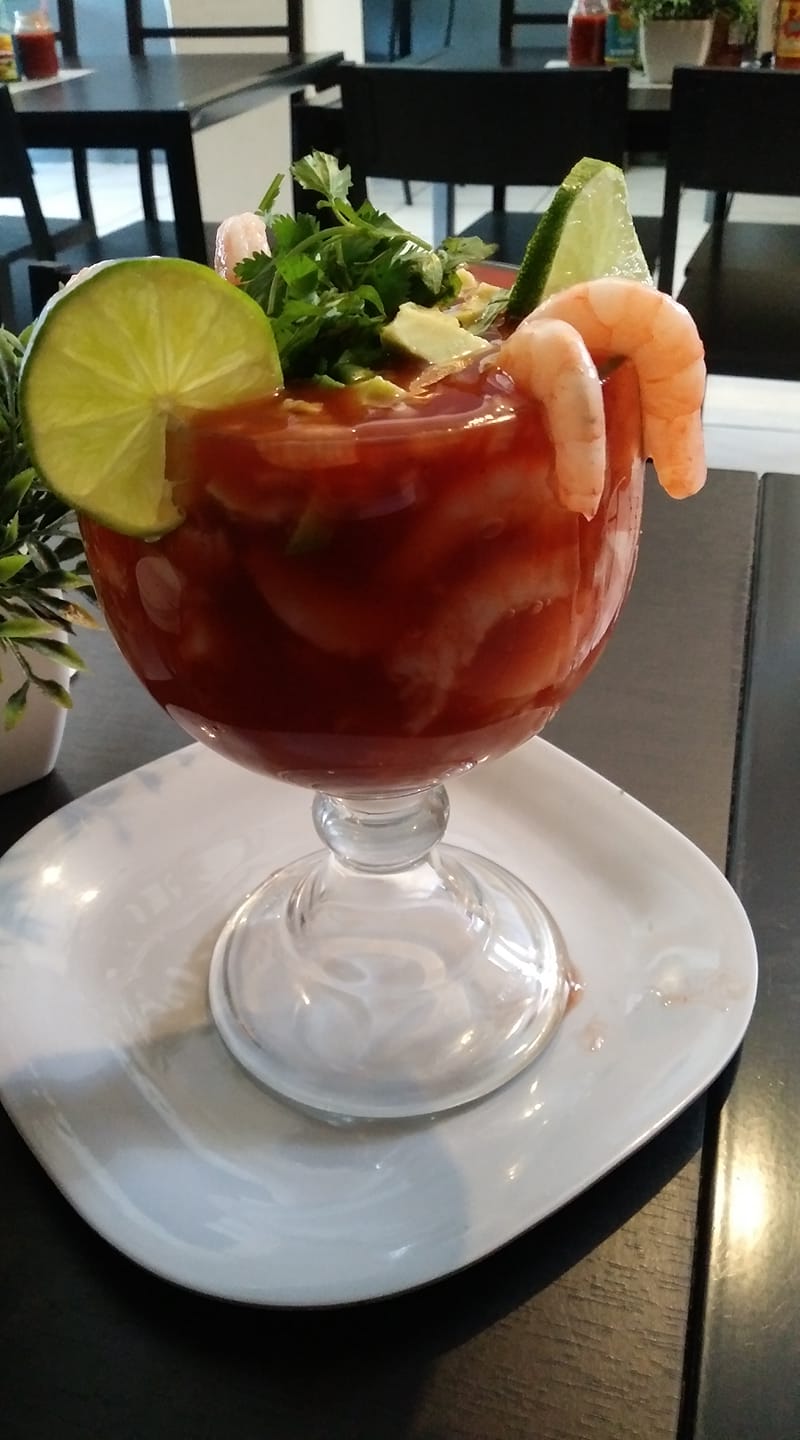 Camarón con pulpo acompañado de jitomate, cilantro incluye aguacate, cebolla morada y limones.