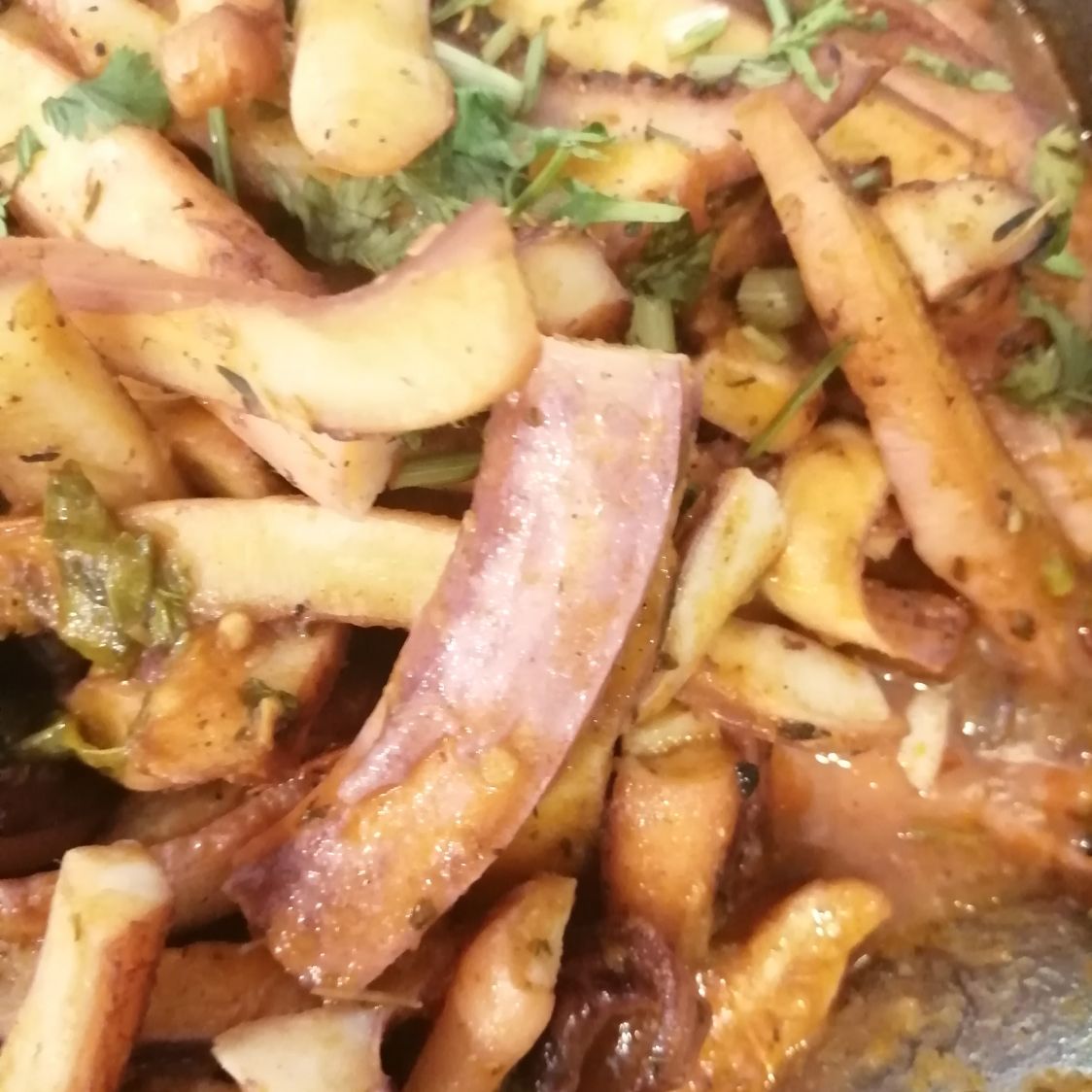 Combinado de mariscos acompañada de zanahoria y papa.m