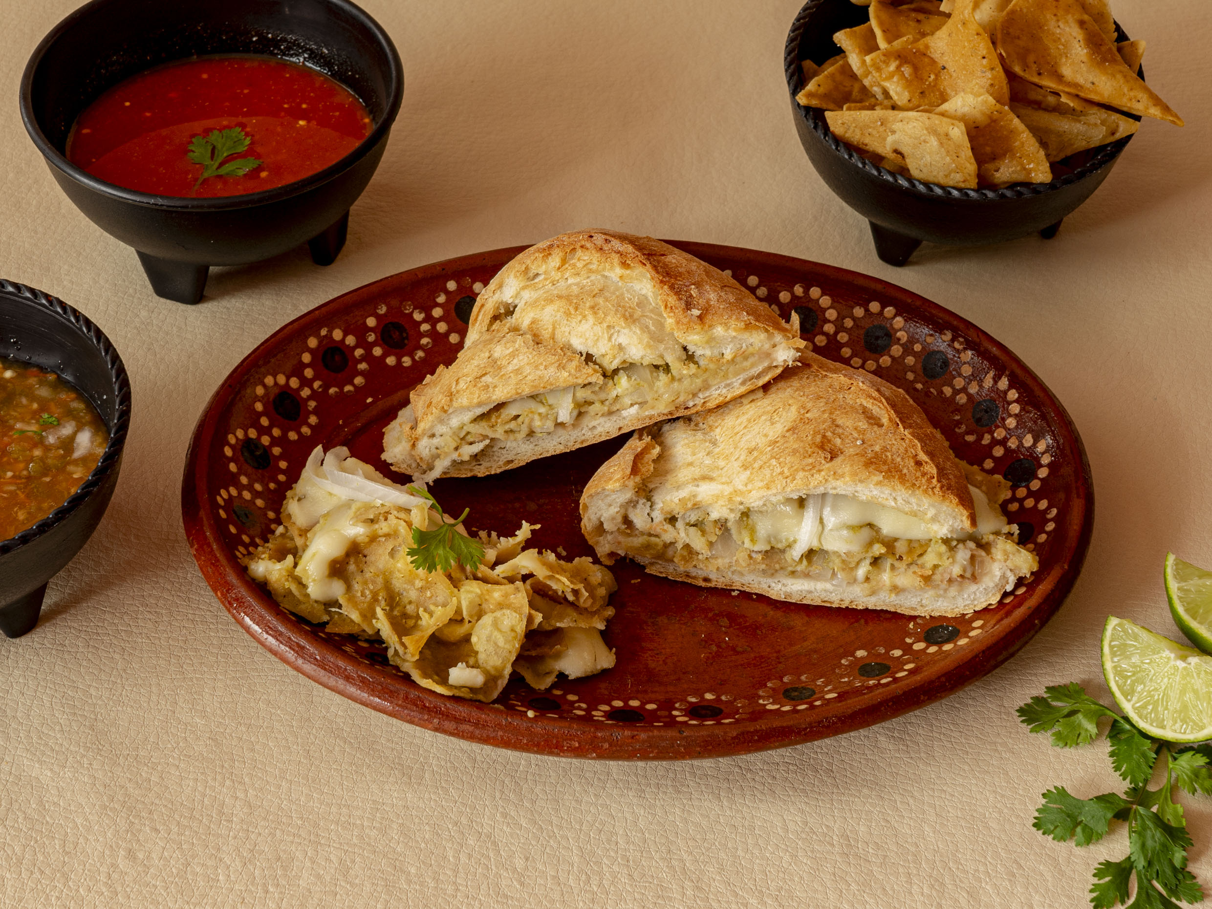 Chilaquiles verdes con crema en bolillo
