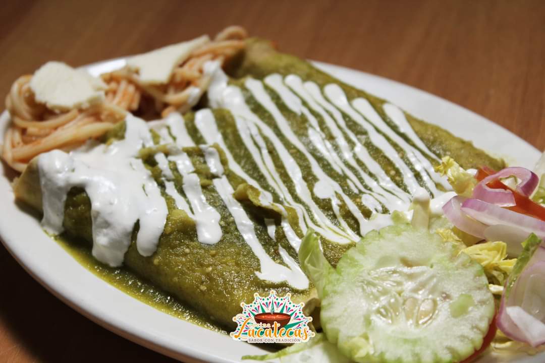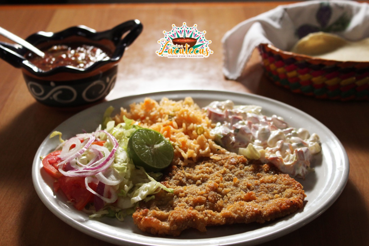 Rellenas de pollo, acompañadas con arroz y ensalada
