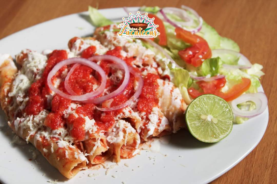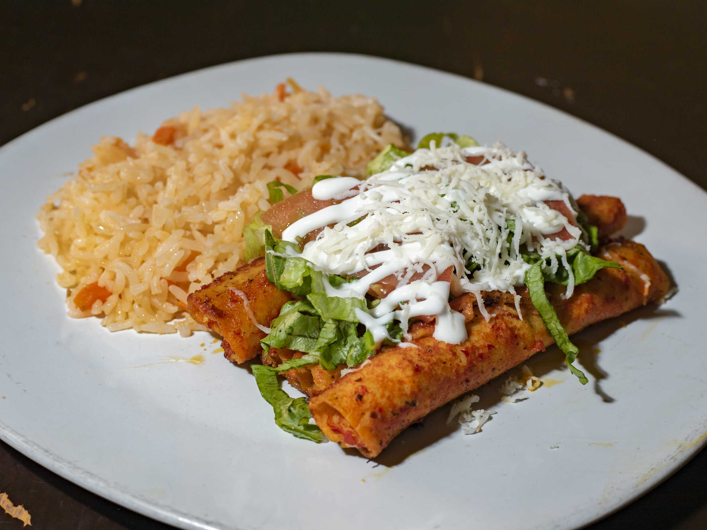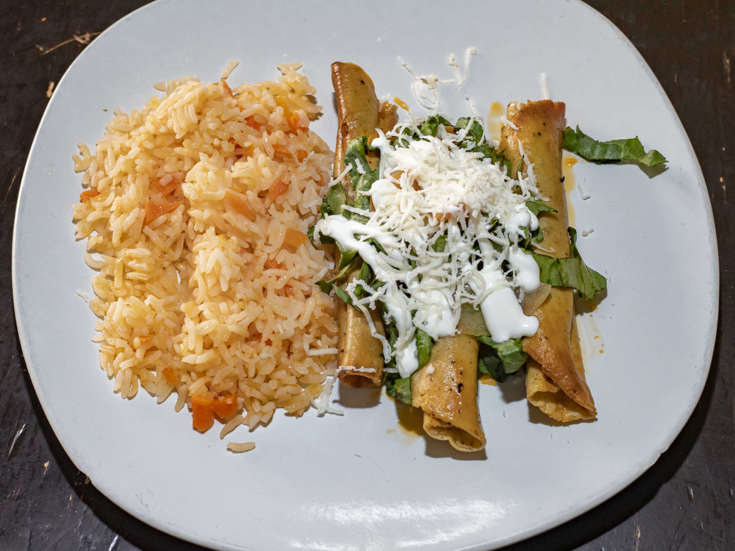 Tacos dorados acompañado de espagueti, arroz o frijoles