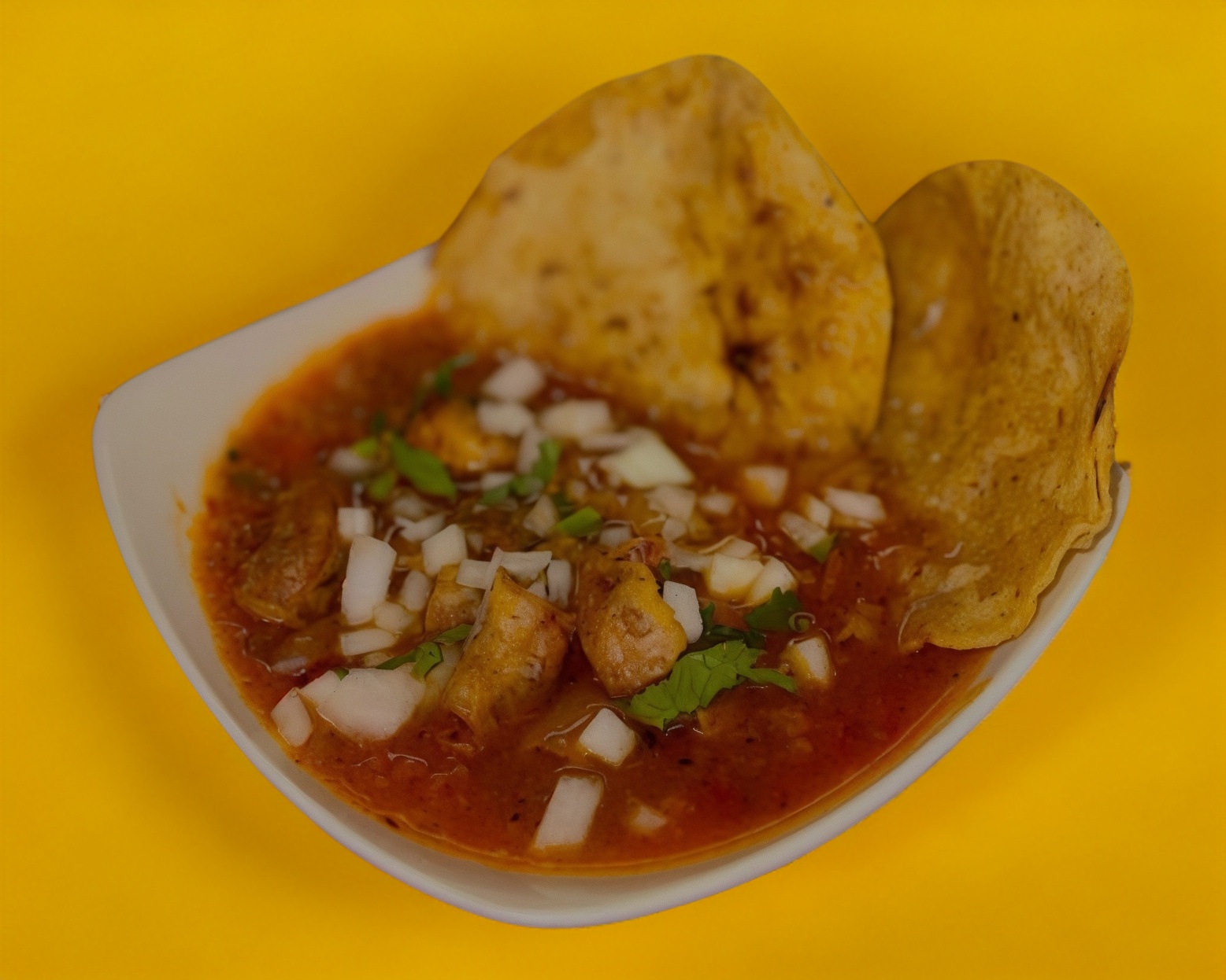 Salsa guisada, porción de frijoles, tripita dorada, tortillas de maiz