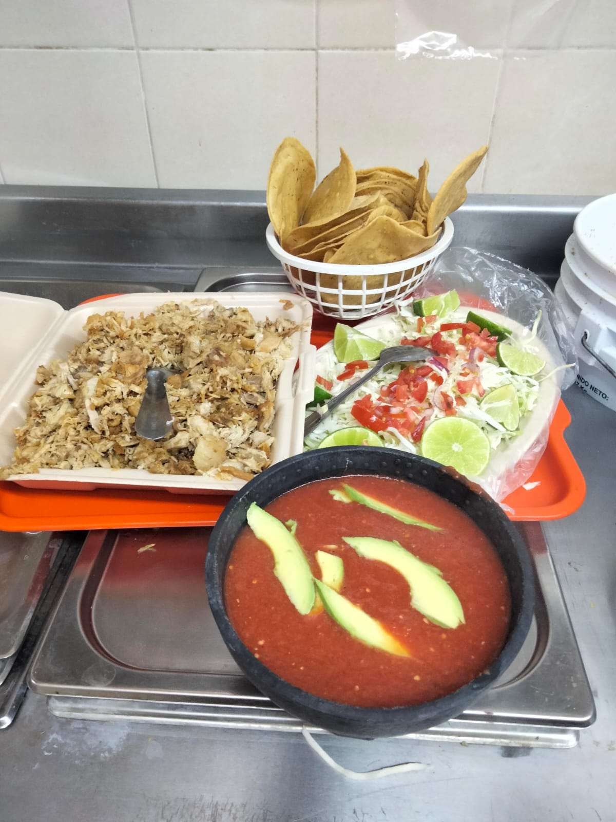 1 kg de Carnitas*1 + Medio Litro de Salsa*1 + 20 Tostadas*1 + Verdura*1 + Agua Fresca*1