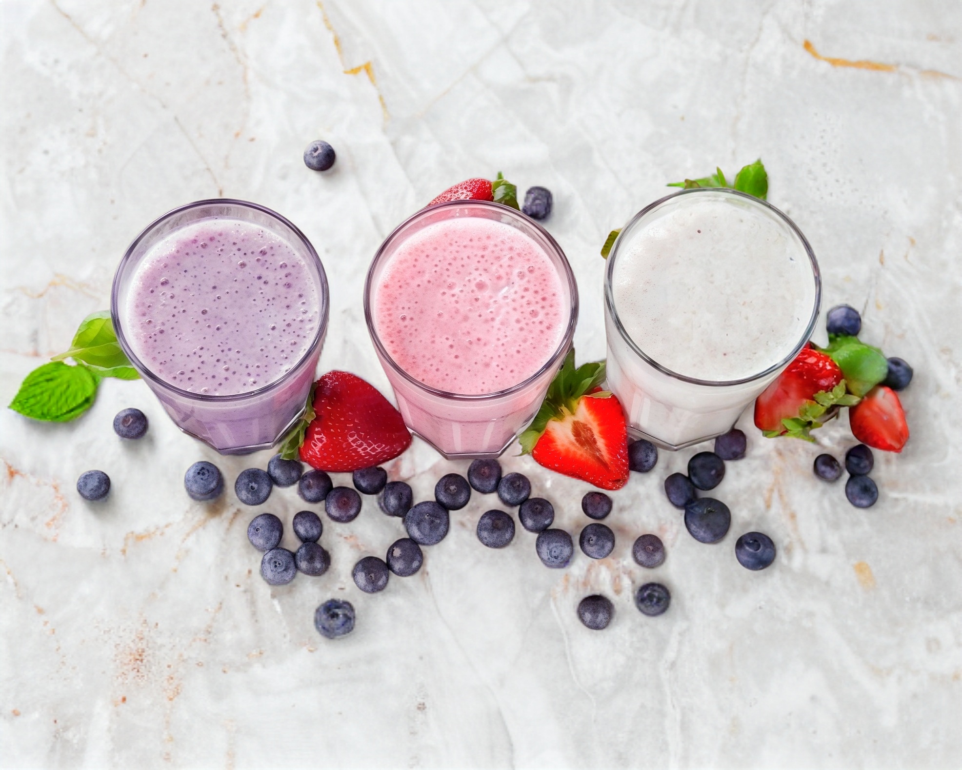 Jugo de naranja, plátano, fresa, mango, agua de coco.