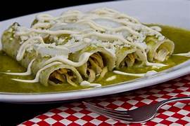 Tradicionales enchiladas de salsa cremosita de chile verde, rellenas de queso y crema ácida, acompañadas de ensalada y topping de arrachera o pollo.