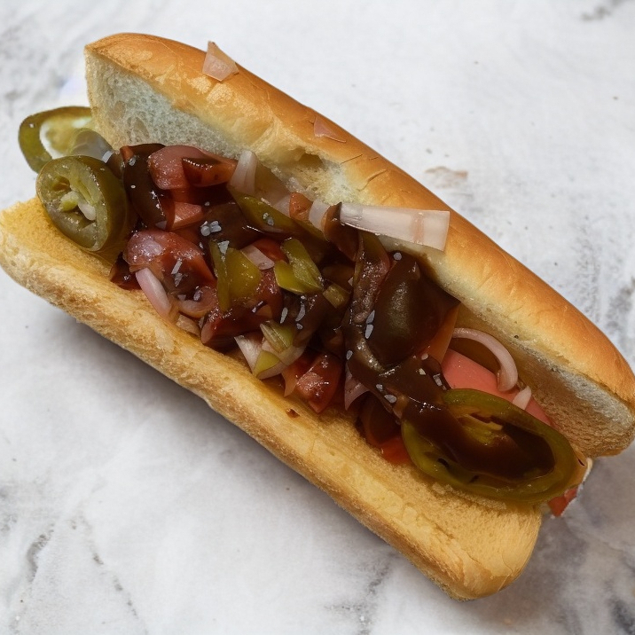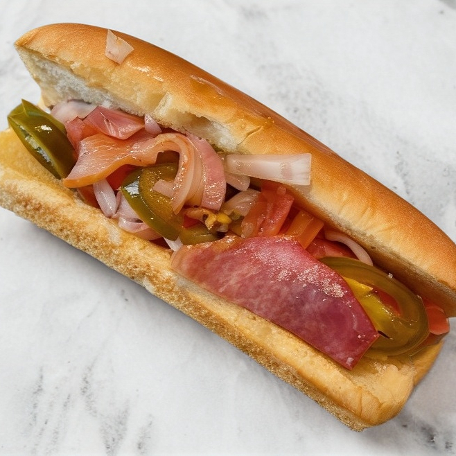 Pan, salchicha, salsa BBQ, chiles, verduras, cátsup, mostaza y mayonesa.