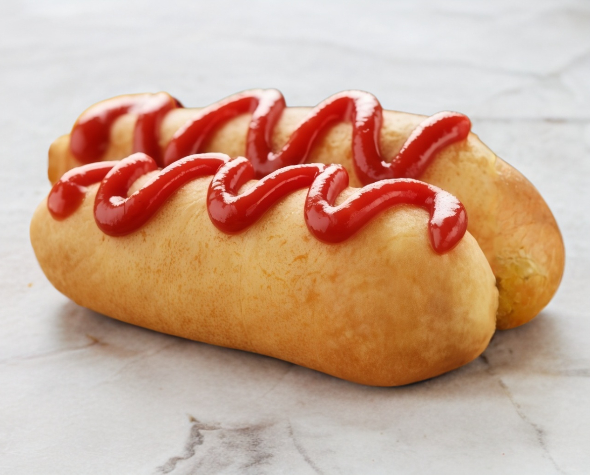 Salchicha lampreada o empanizada con salsa cátsup.