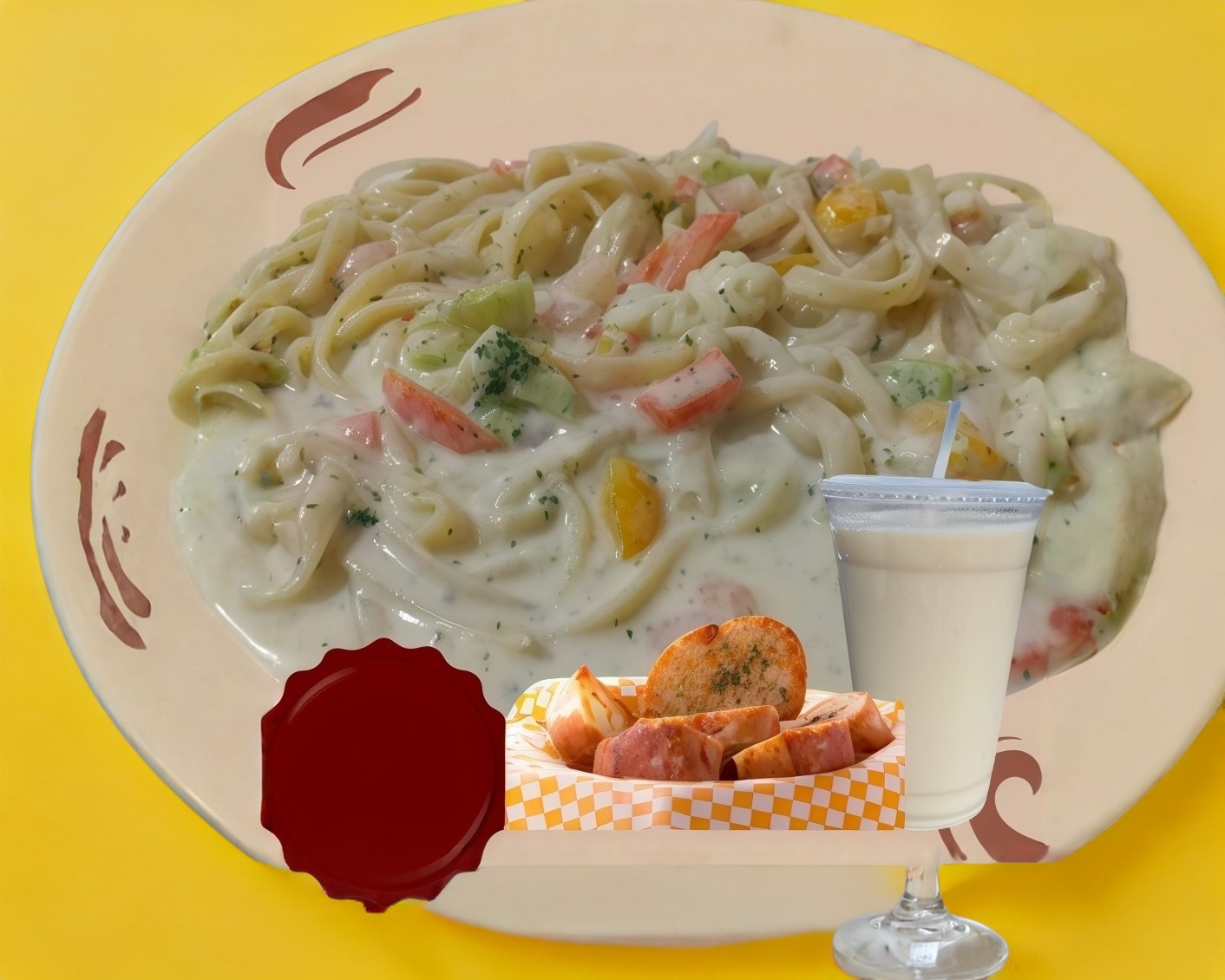 Alfredo Camarones*1 + Pan de Ajo*1 + Agua Fresca del Día*1