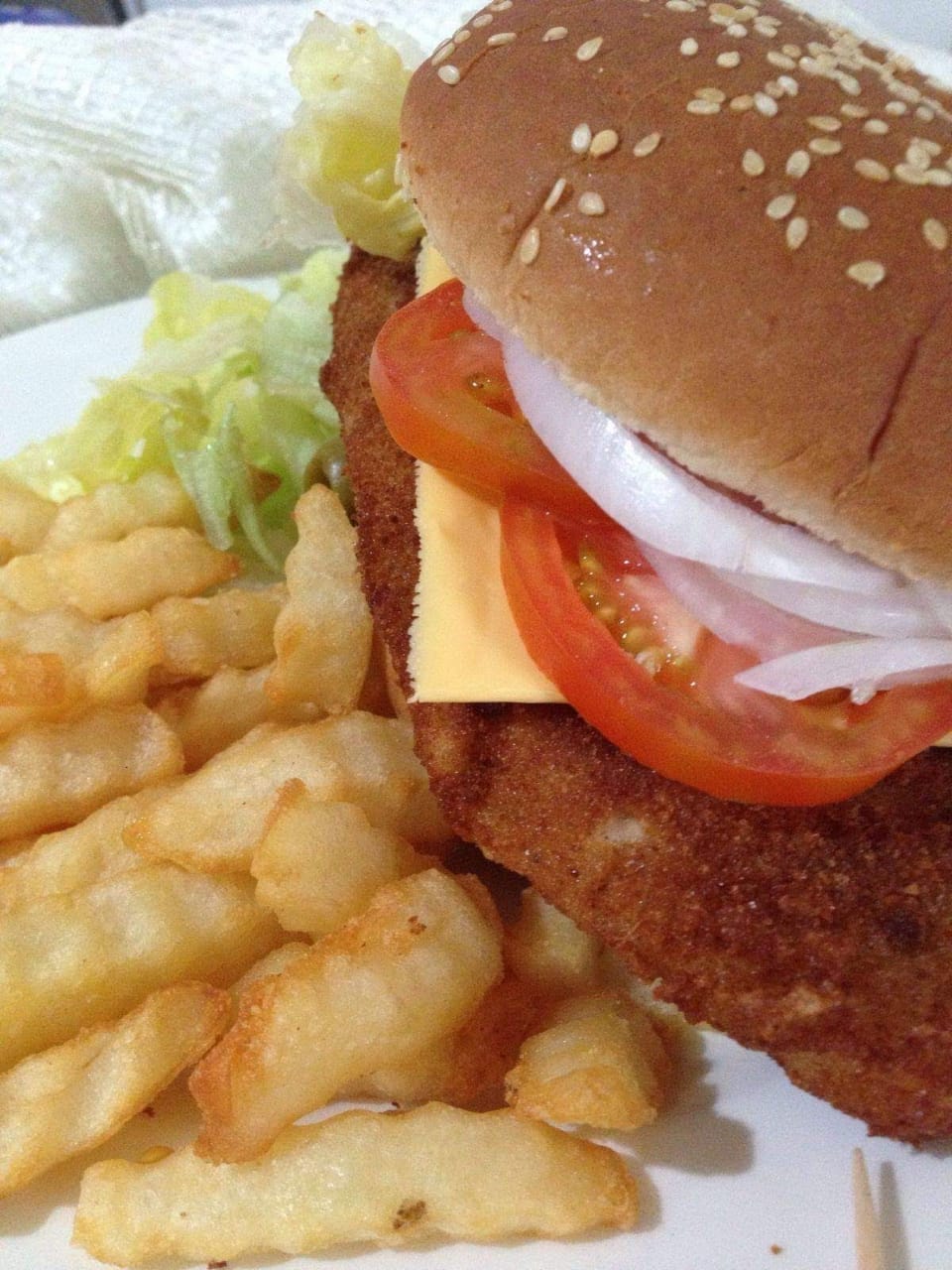Hamburguesa de pollo*1 + Papas Fritas.*1