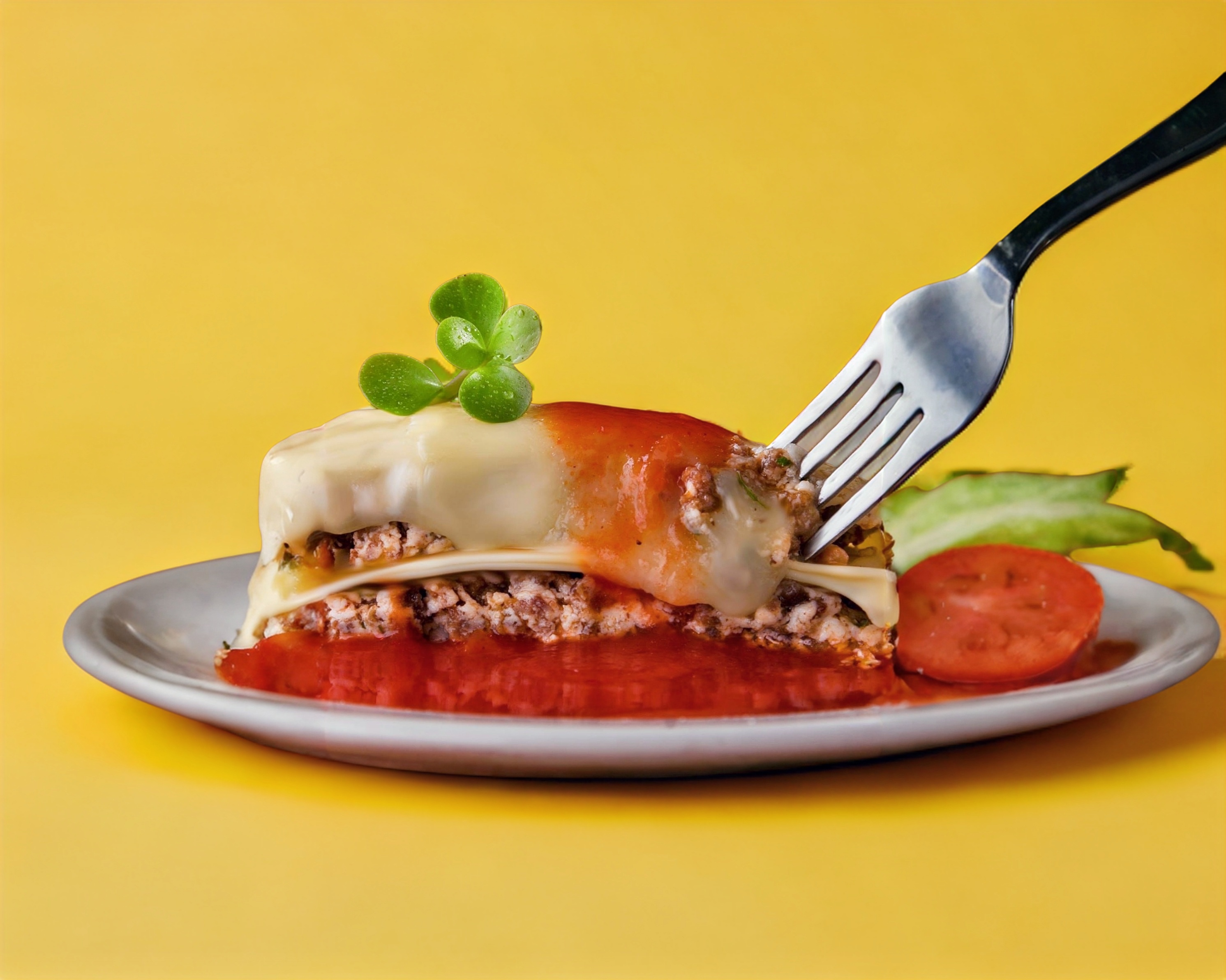 Carne, ricota, queso, bañada en salsa marinera gratinado, pan.