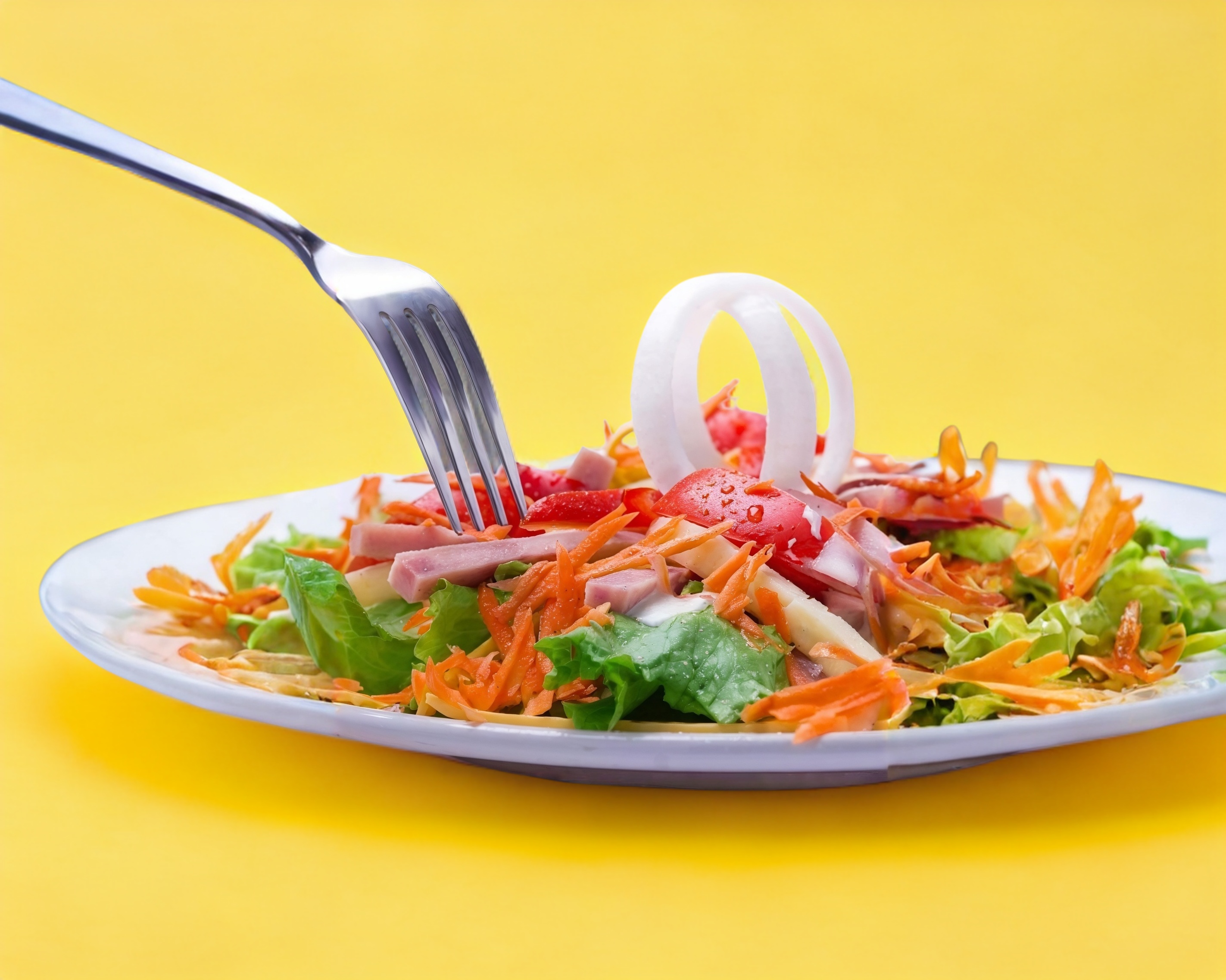 Lechuga, jitomate,pepino, zanahoria,pimientos,queso blanco,amarillo y jamón. Aderezo ranch
