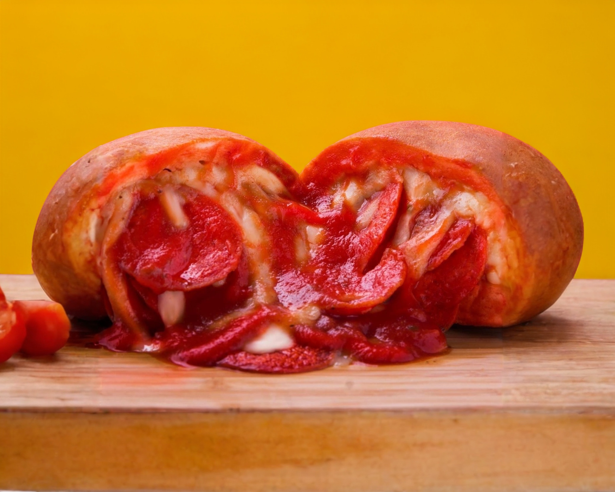 Empanada rellena grande queso, rellena Ingredientes de pizza.