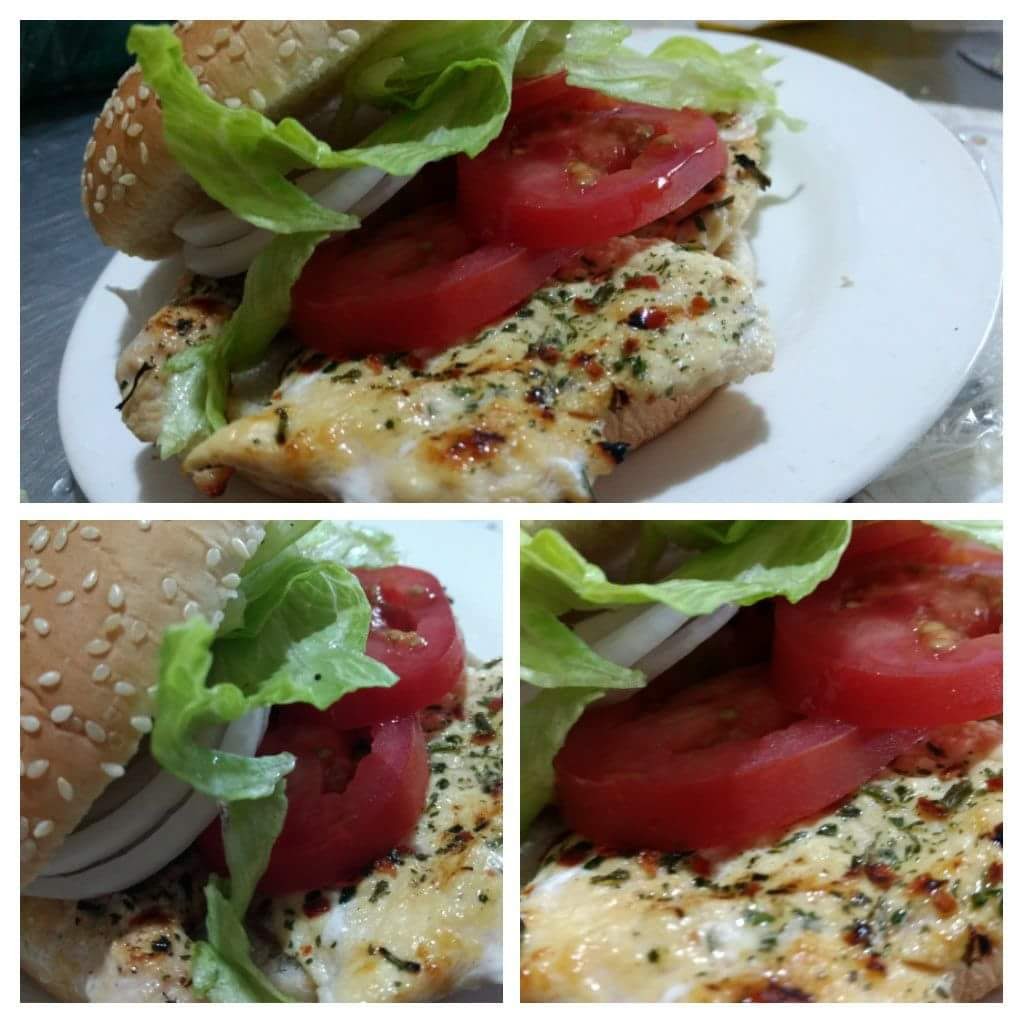 Pechuga asada, queso amarillo, lechuga, tomate, cebolla.
