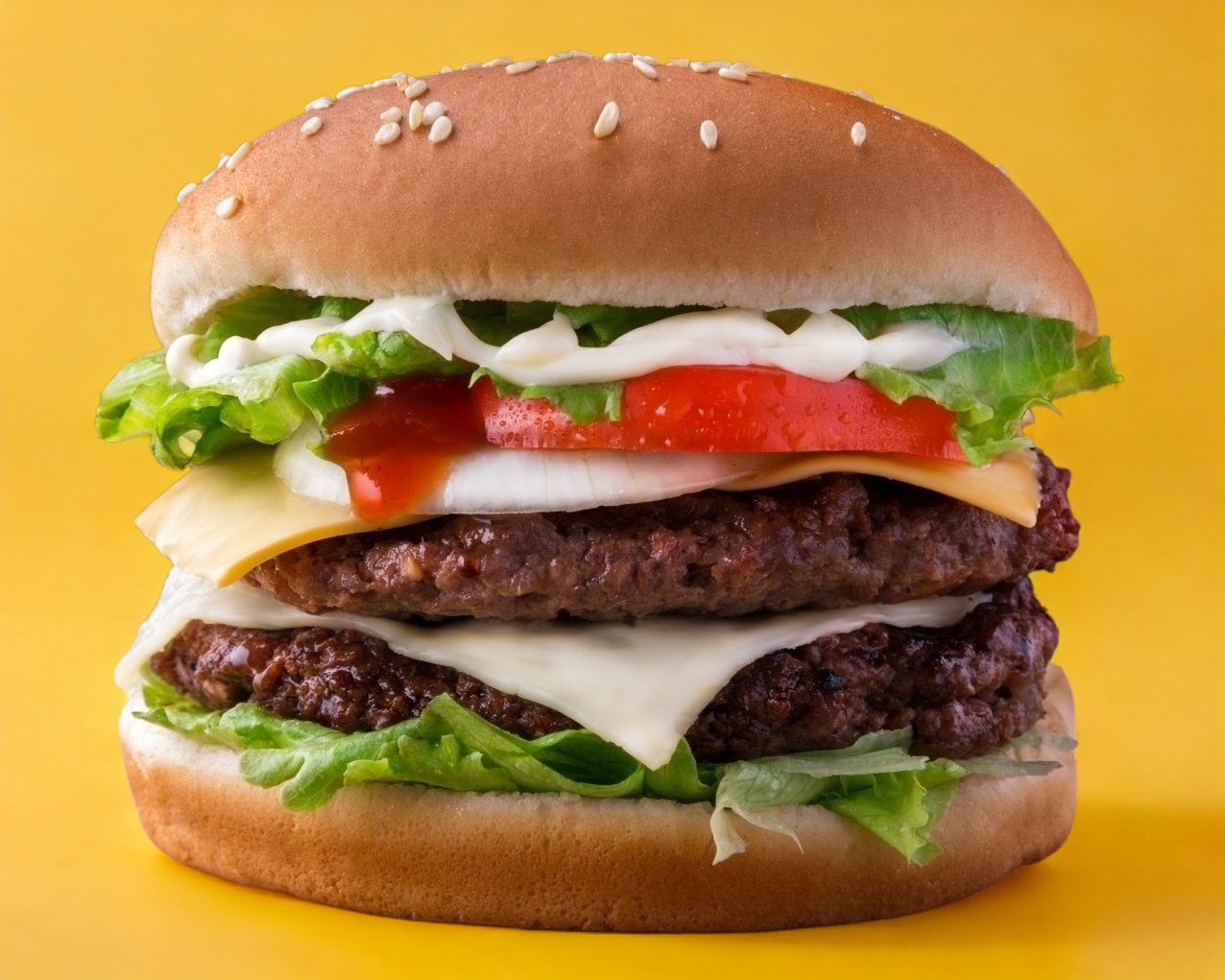 Doble carne a la parrilla, queso amarillo y blanco, lechuga, tomate, cebolla, capsup,mayonesa