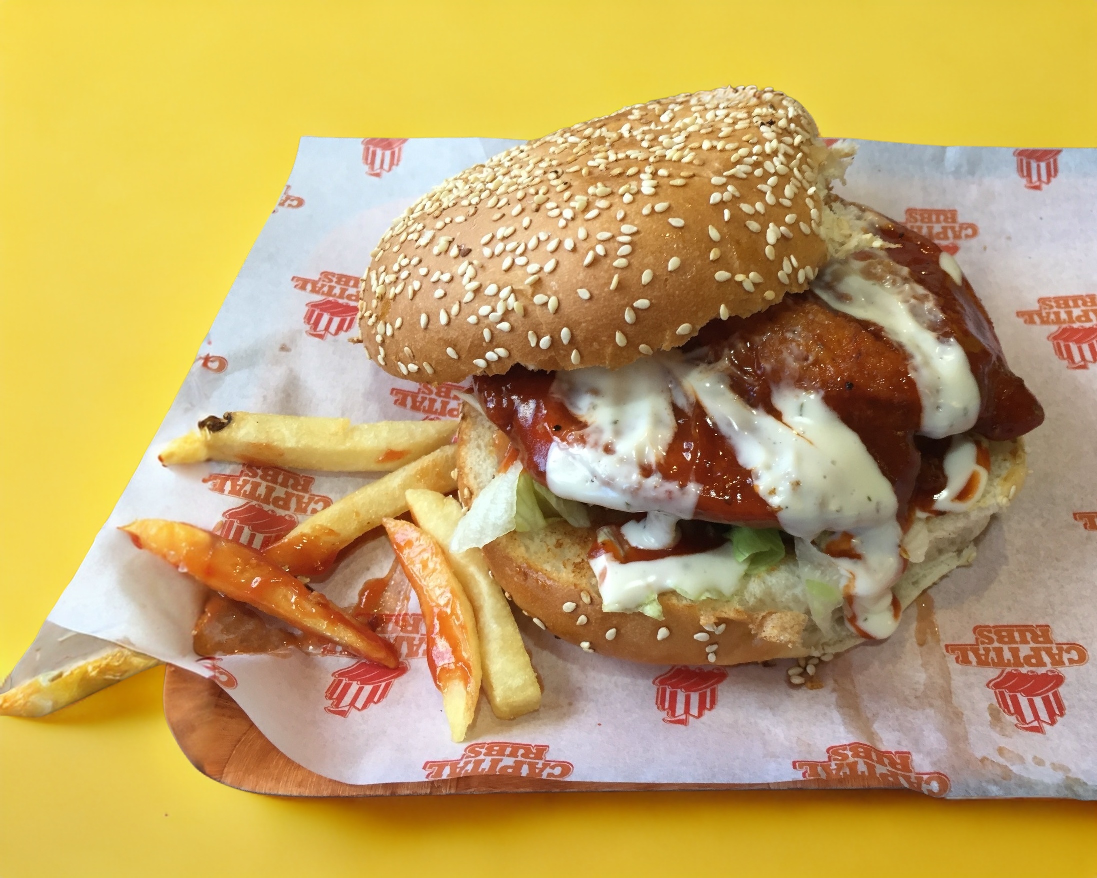 Hamburguesa Italiana de Pollo*1 + Papas Fritas.*1