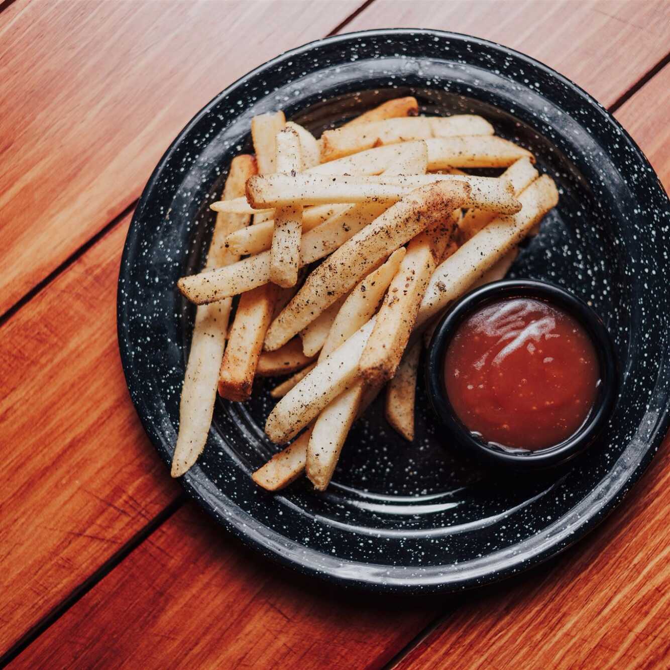 Papas a la francesa corte delgado sazonadas con pimienta limon