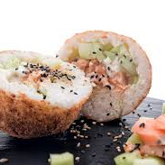 Bola de arroz con queso crema, pepino, salsa aurora, tampico salsa anguila y relleno a elegir
