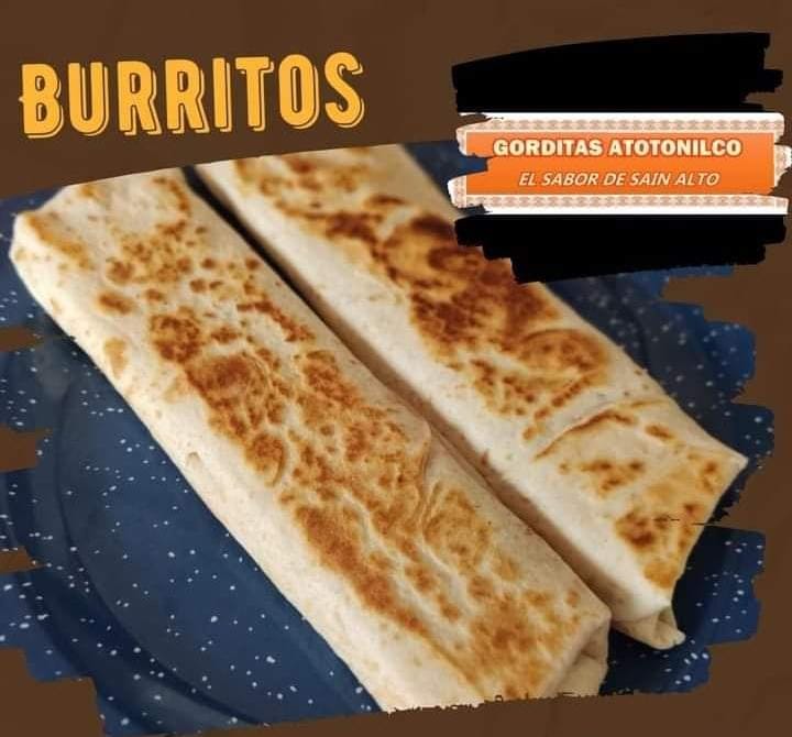 Delicioso burrito preparado con tortilla de harina relleno de la tradicional receta de Sain Alto.