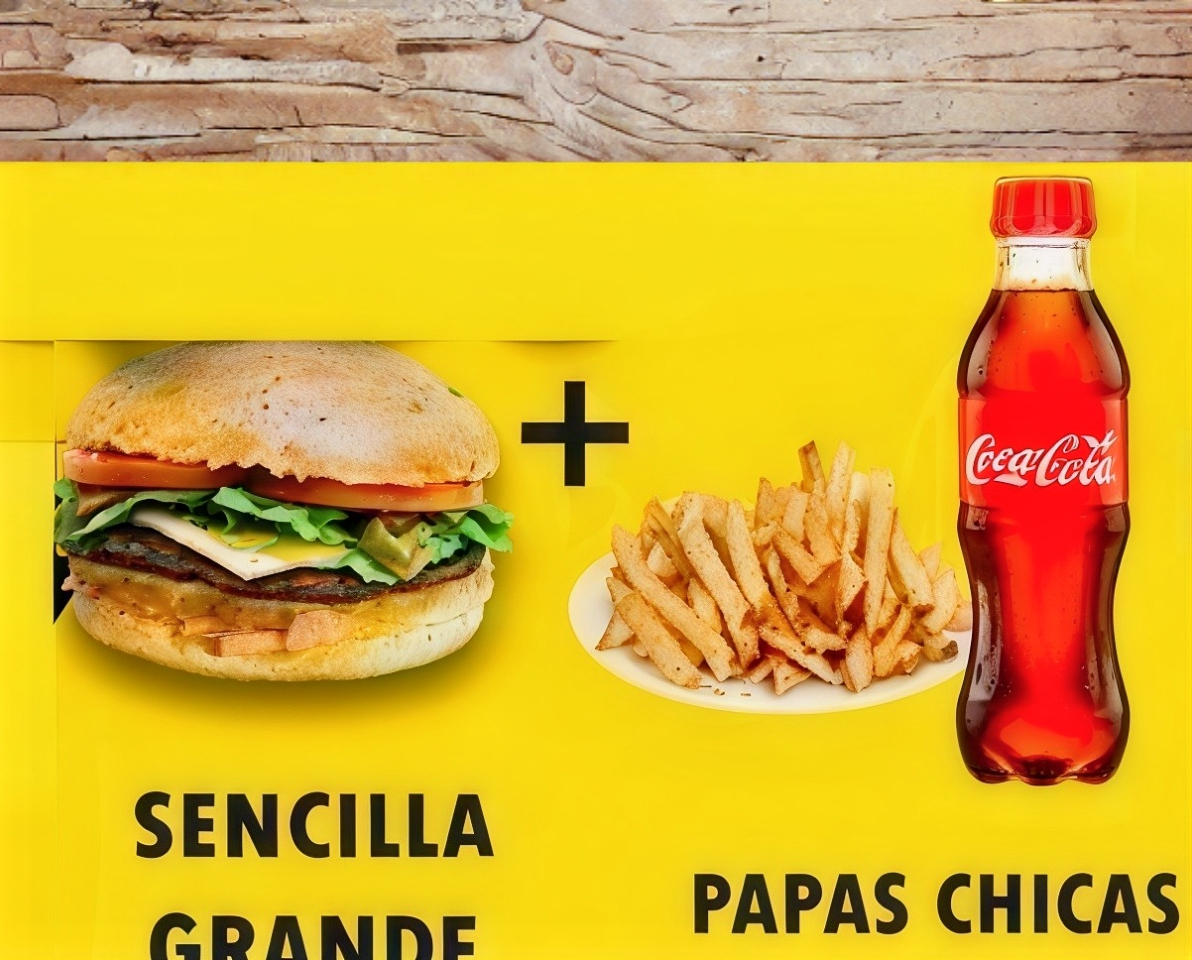 Sencilla grande, papas chicas, refresco de 400 ml.