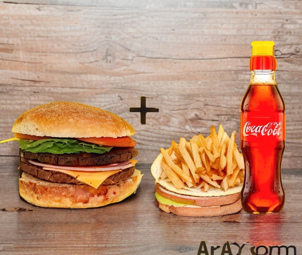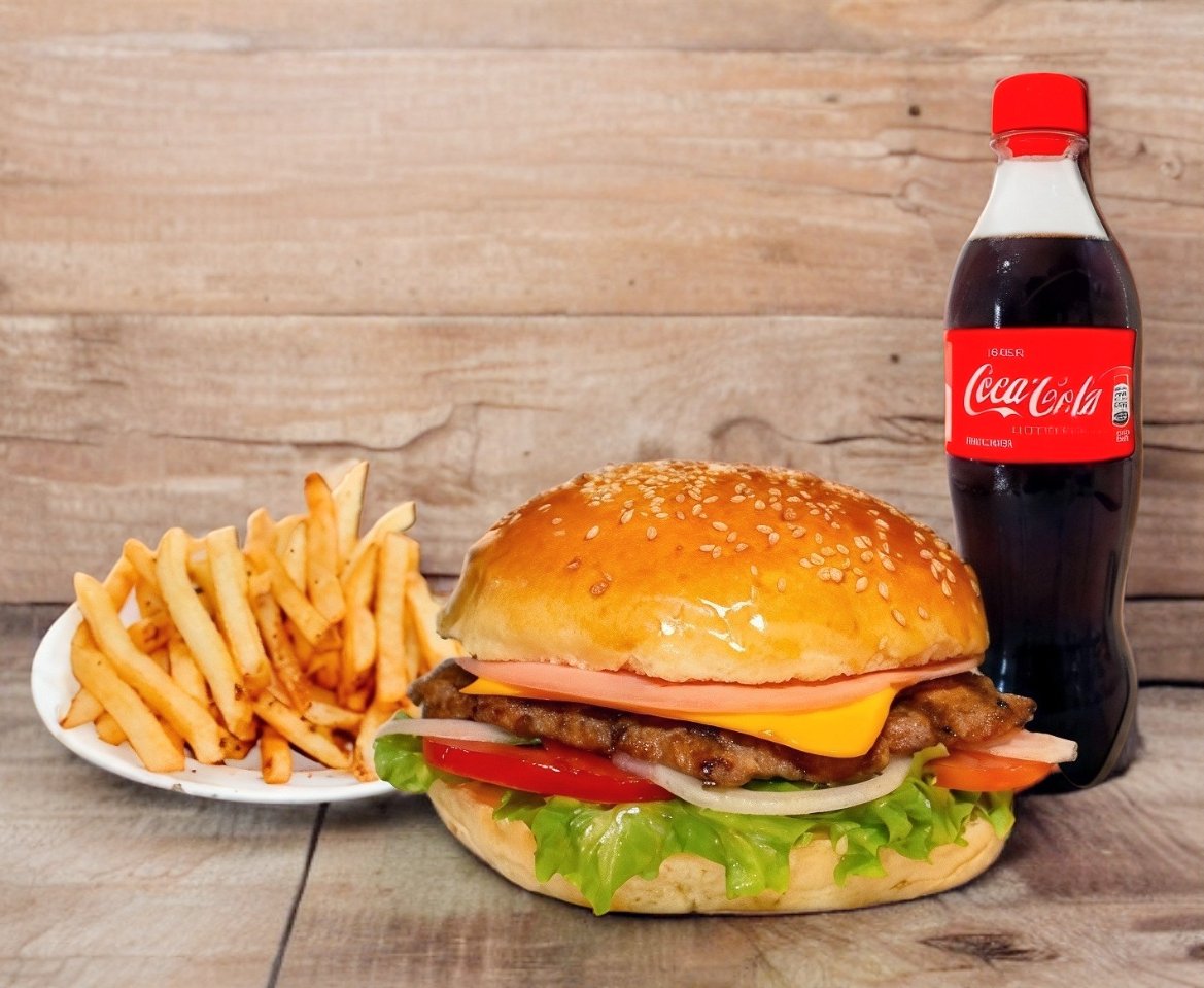 Hamburguesa sencilla chica, papas a la francesa chicas y refresco de 400 ml.